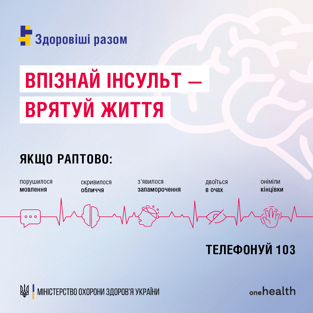 Інсульт вимагає невідкладного медичного втручання. Людина з ознаками інсульту, яка отримує допомогу лікарів упродовж перших 4,5 годин, має більше шансів повернутися до повноцінного життя та уникнути тяжких й незворотних наслідків. Якщо ви підозрюєте, що у вас чи у когось іншого інсульт, негайно зателефонуйте за номером 103.